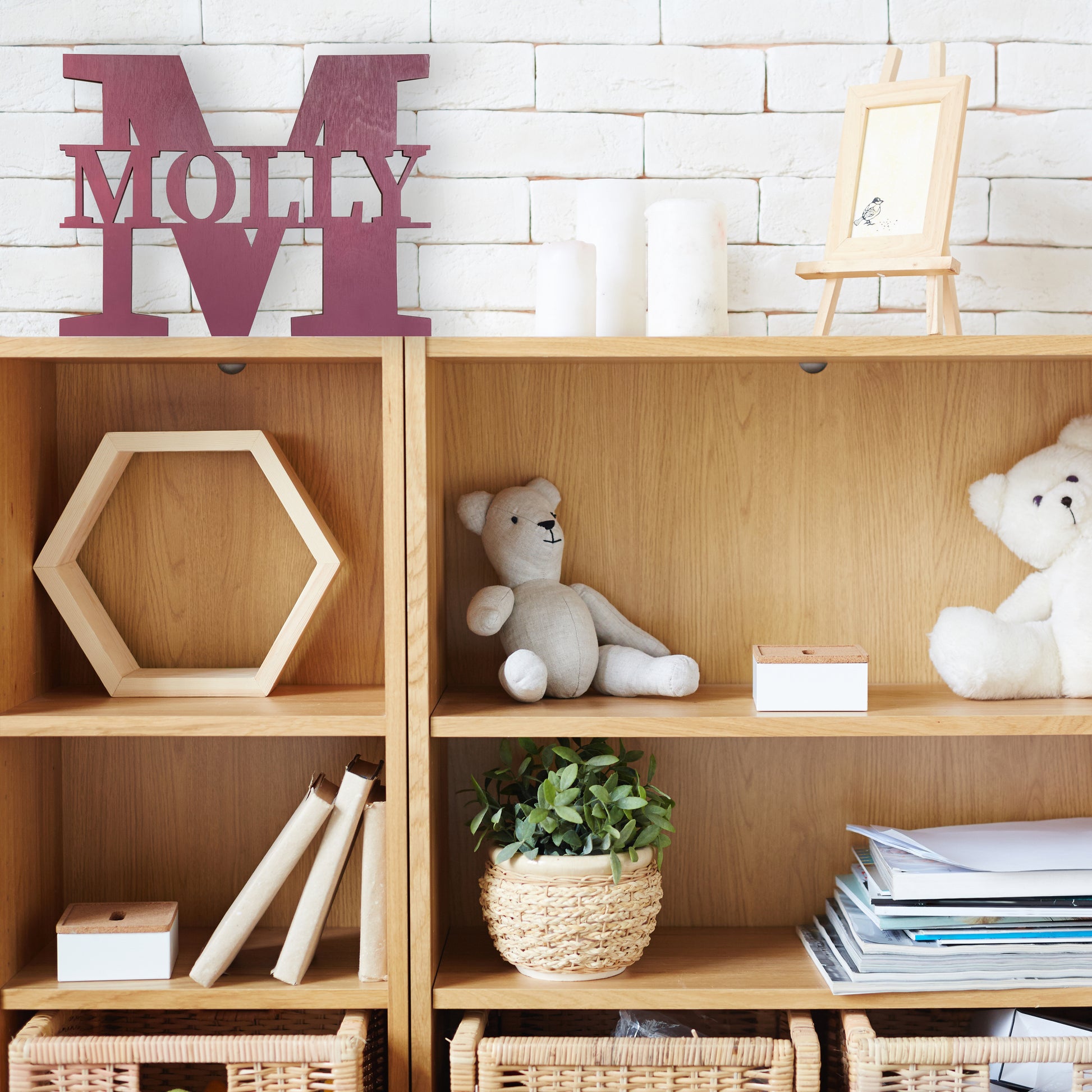 Tidlös Personlig Väggbokstav passar för föräldrar som vill skapa ett barnrum där detaljerna känns genomtänkta snarare än tillfälliga. Den fungerar lika bra som en personlig gåva vid födsel, dop eller födelsedag, som en del av hemmets fasta inredning.